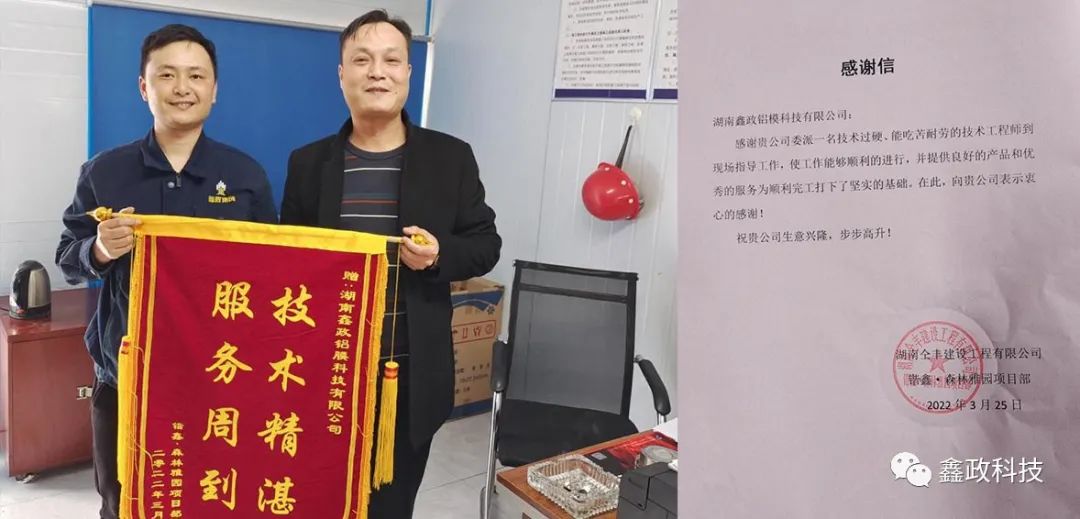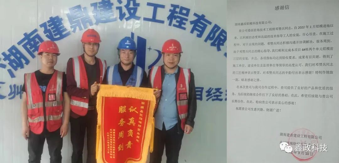 榮譽源自信任,信任源自擔當。錦旗既是對鑫政集團的鼓勵也是一種鞭策,集團未來將繼續以優質服務貫穿始終,以客戶需求為導向,以客戶滿意為目標,進一步完善現場技術服務體系,提升技術服務人員專業能力,切實保障項目進度高效執行,讓客戶樂享“鑫”服務,為客戶創造“鑫”價值,與客戶共創“鑫”輝煌。