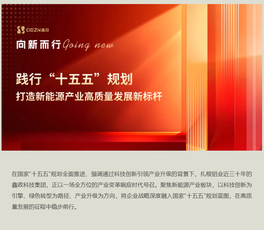 面向“十五五”,鑫政將繼續(xù)通過綠色智造、科技創(chuàng)新與產(chǎn)業(yè)升級的協(xié)同推進(jìn),在新一輪產(chǎn)業(yè)變革中搶占先機(jī)。立足中國制造堅(jiān)實(shí)基礎(chǔ),聚焦新材料、新工藝、新應(yīng)用的系統(tǒng)突破,推動(dòng)鋁材料在新能源領(lǐng)域的創(chuàng)新引領(lǐng),在實(shí)現(xiàn)“十五五”規(guī)劃目標(biāo)的進(jìn)程中,展現(xiàn)從“中國制造”到“中國引領(lǐng)”的鑫政實(shí)踐,為全球綠色轉(zhuǎn)型貢獻(xiàn)中國智慧與中國方案。